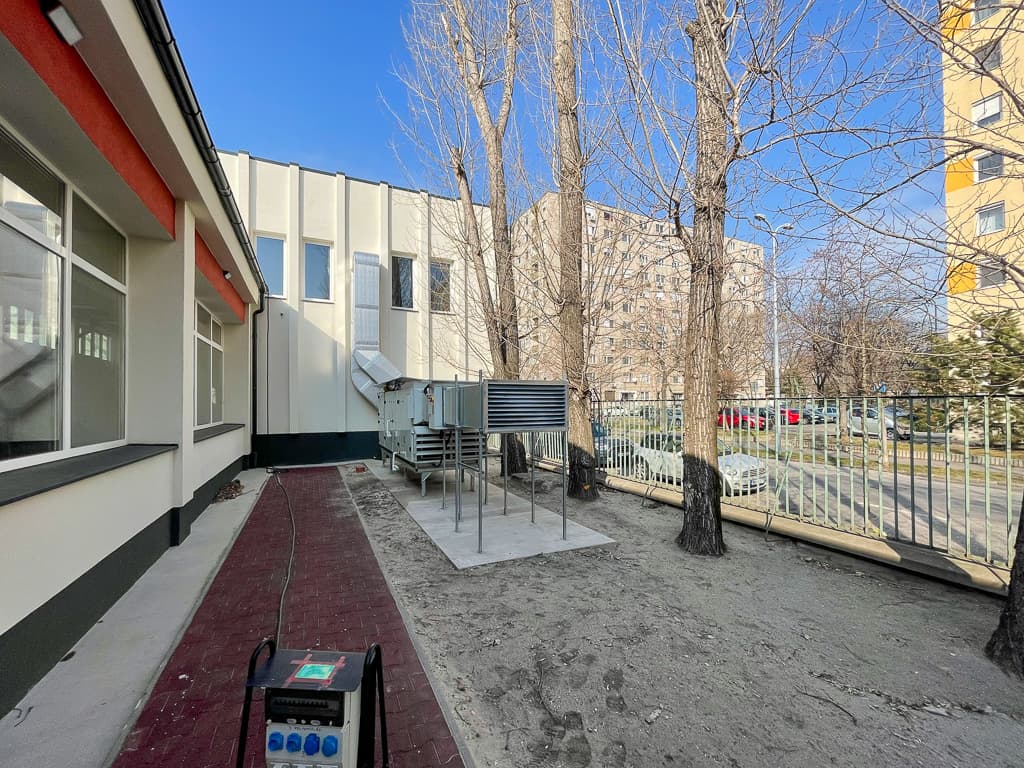 - Gépészeti oldalról teljes hőközpont rekonstrukcióra került sor, amely során 3 db REMEHA Quinta ACE kazán került beüzemelésre. A beruházás során új légbeszívó ág került kialakításra, valamint a régi konyhai elszívó ventilátor is cserére került. Új füstgáz elvezető rendszer is telepítésre került. A szükséges tűzvédelmi lezárások, átvezetés kialakításokat is elvégeztük.