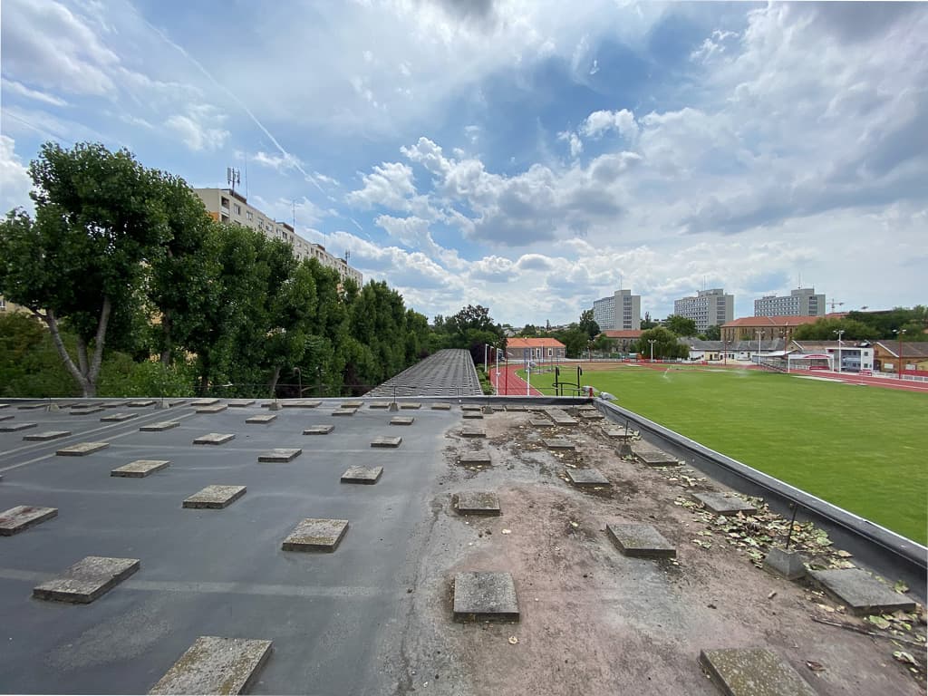 - a meglévő sportpadló körül Conica Contipur Mx+ sportburkolat kialakítása meglévő aljzatbetonra teljes rétegrendben, mintegy 360 m2-en;