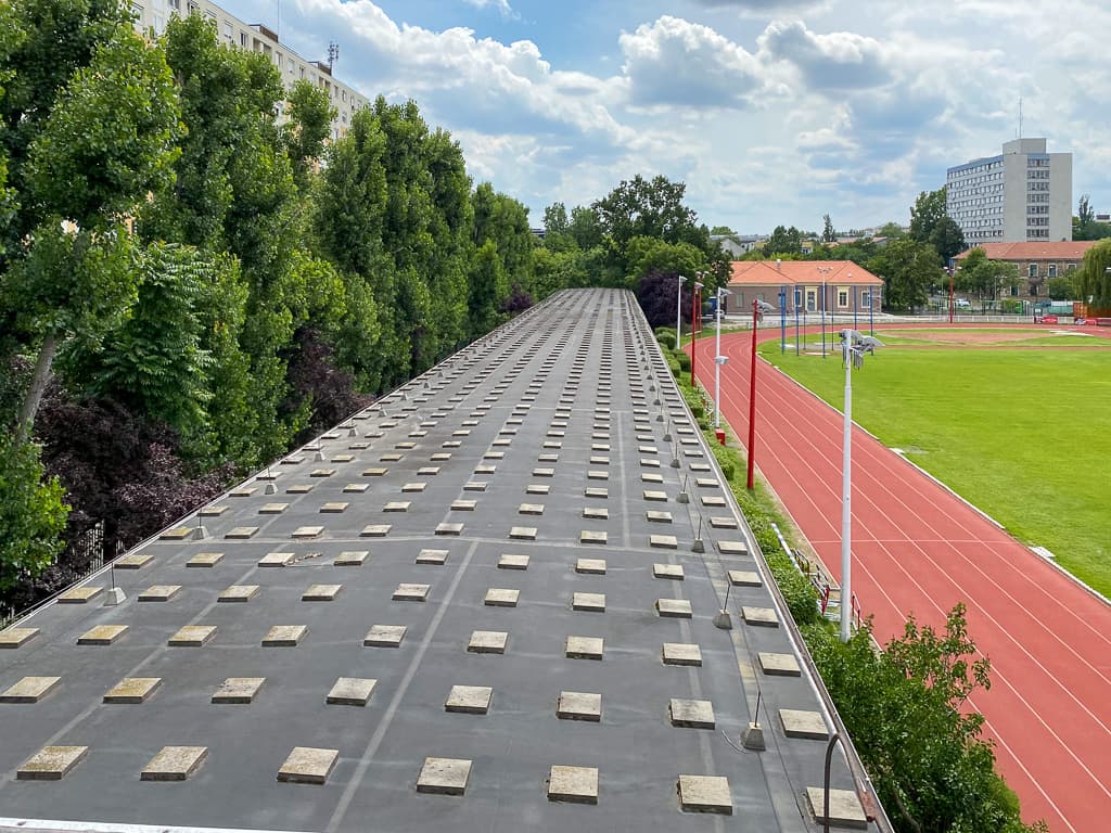 - a hármas és távolugró sávok nemzetközi szabványok szerinti kialakítása, az alkalmazott sporttechnológiai eszközök beépítésével, továbbá rúdugráshoz szükséges letűző szekrény szabványos beépítése.