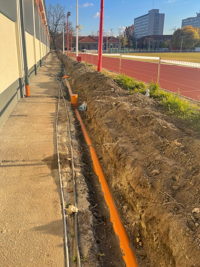 - kültéri és beltéri esővíz vezeték teljes korszerűsítése 600fm-en;